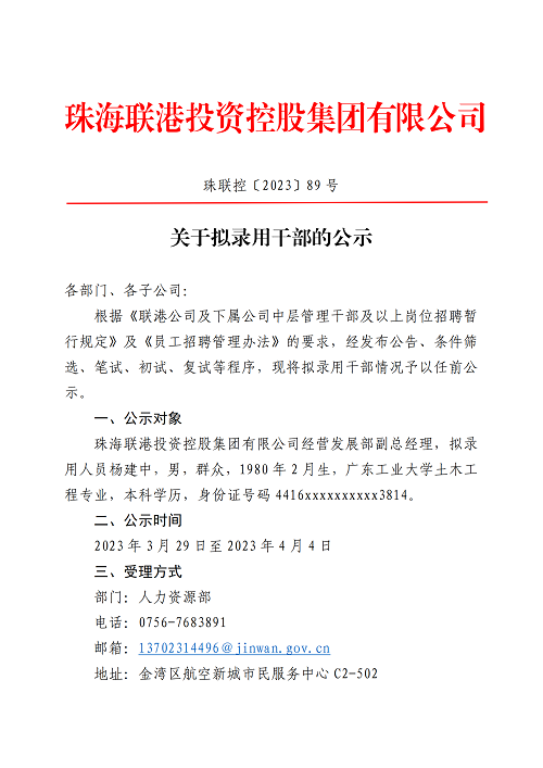 珠聯控〔2023〕89號 關于擬錄用干部的公示