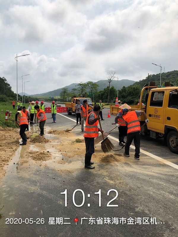 此次應(yīng)急清障演練,金灣交通公路部門組織應(yīng)急搶險人員近40人,車輛10余臺,其中城運公司投入道路管養(yǎng)工作人員25人,出動6臺作業(yè)車輛以及一批小型設(shè)備,參與了有序清障、泥沙清掃、路面清洗和安全撤離等環(huán)節(jié)的實操演練。演練全過程前后用時1.5小時,完成了整個公路清障應(yīng)急演練活動。