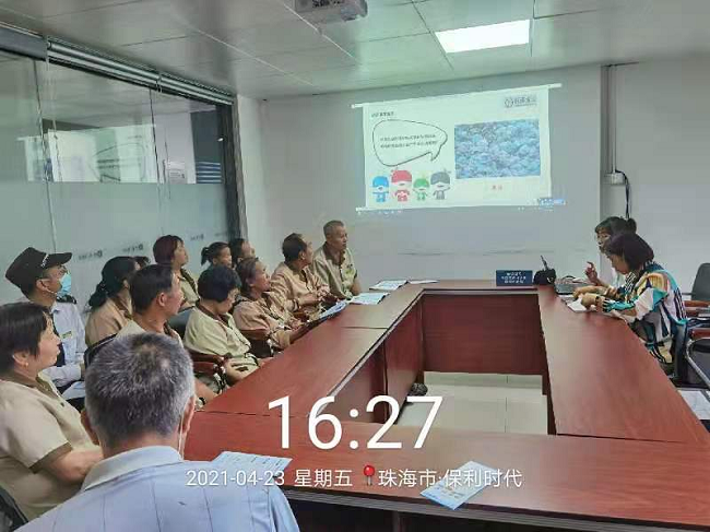 4月23日、24日下午聯(lián)港公司垃圾分類項目宣講員到保利時代、中海左岸嵐庭小區(qū)開展垃圾分類專題培訓(xùn),保利時代、中海左岸嵐庭物業(yè)管理層和保潔隊伍等共計50人,分成兩批參訓(xùn)。聯(lián)港公司垃圾分類項目宣講員受邀前往現(xiàn)場作《垃圾分一分金灣美十分》主題培訓(xùn)。