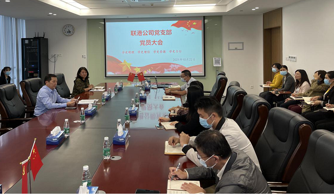 10月22日下午,聯(lián)港公司黨支部在5樓會(huì)議室召開黨員大會(huì),會(huì)議由支部副書記邱影主持,公司總經(jīng)理龍?chǎng)纬鱿瘯?huì)議。