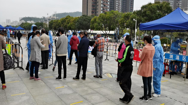 安全高效,有條不紊。現(xiàn)場(chǎng)工作中,防疫抗疫宣傳、維護(hù)秩序、信息采集,及時(shí)提醒群眾保持一米安全距離,全程佩戴口罩,主動(dòng)掃碼測(cè)溫,嚴(yán)格規(guī)范檢測(cè)流程,每一樣都是有條不紊地推進(jìn),連日的奮戰(zhàn),從醫(yī)務(wù)工作者、社區(qū)工作者、志愿者到群眾,都增添了更多的淡定、從容。
