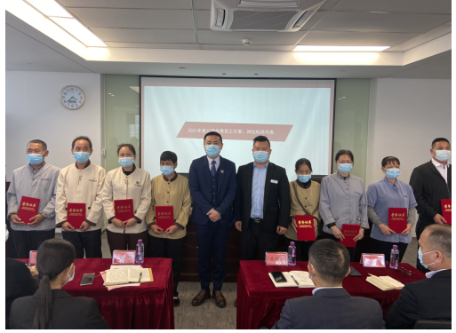 會上,龍總與資產(chǎn)公司班子成員對獲得2021年度優(yōu)秀員工、崗位標(biāo)兵和疫情防控先進個人稱號的代表頒發(fā)了證書,并在會后同他們親切合影留念。