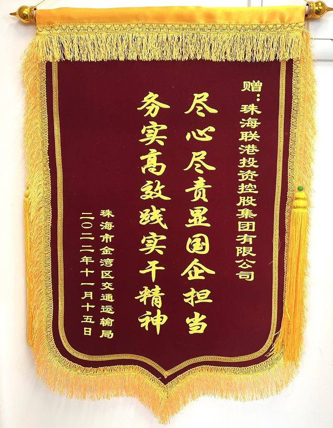 2022年11月15日上午,珠海市金灣區(qū)交通運(yùn)輸局局長(zhǎng)章芳一行領(lǐng)導(dǎo)專程將一面寫著“盡心盡責(zé)顯國(guó)企擔(dān)當(dāng),務(wù)實(shí)高效踐實(shí)干精神”的錦旗送到聯(lián)港集團(tuán),衷心感謝聯(lián)港集團(tuán)在航展期間停車場(chǎng)保障工作中“不講條件、不講困難、不辭勞苦”,勇于擔(dān)當(dāng)、晝夜奮戰(zhàn),緊急處置P6、P8停車場(chǎng)各種應(yīng)急情況,積極引導(dǎo)市民有序入場(chǎng)、熱情地為市民們解答觀展政策,提供航展信息咨詢服務(wù),為市民提供了優(yōu)質(zhì)的觀展體驗(yàn),用責(zé)任、熱情、耐心守護(hù)“藍(lán)天盛會(huì)”,為航展增添了一抹亮麗的風(fēng)景。